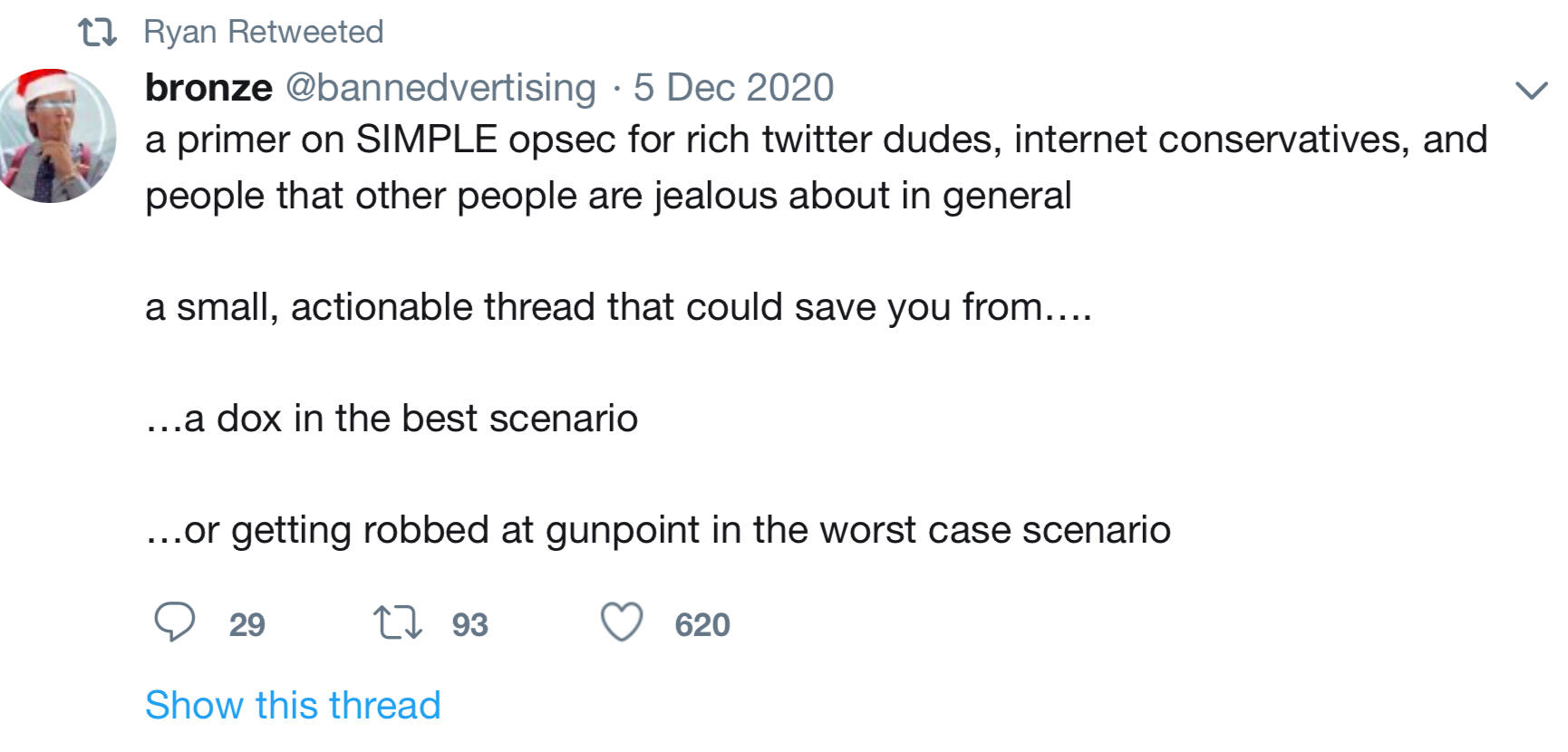 Sure, I wrote this quick OPSEC cheat sheet you can immediately put to work for instant privacy and protection.It's a superficial rundown of things, and it's around 10% of what you'll find in the full course. It got around 500 likes before getting banned by Twitter. Here: